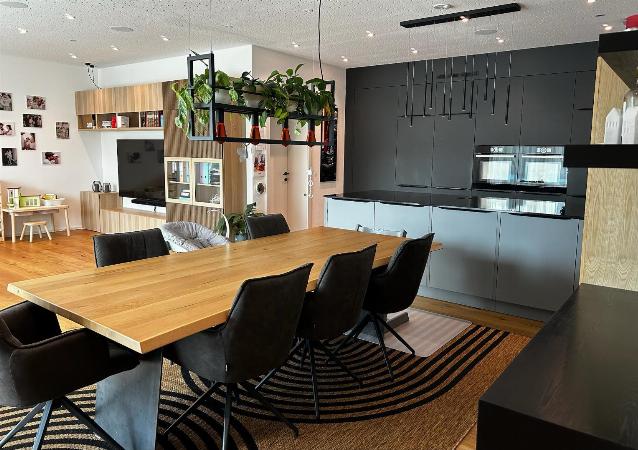 Offener Wohn- und Essbereich: Großzügiges Raumgefühl mit fließenden Übergängen zwischen Kochen, Essen und Wohnen.