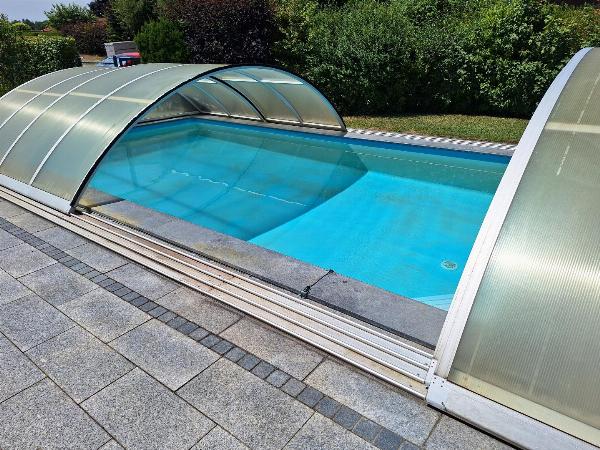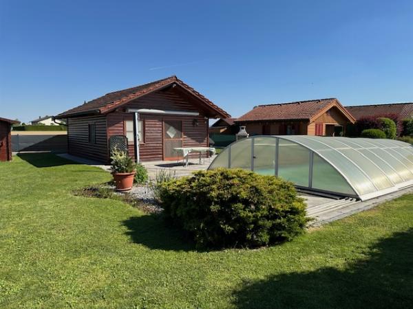 Dieses attraktive Grundstück bietet nicht nur eine idyllische Umgebung, sondern auch einen einladenden Pool. Also der perfekte Ort zum Entspannen und Erholen.